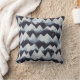 Throw pillow with a watercolor pattern of jagged mountains in midnight blue, blue gray, and white.