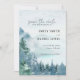 Theme Parties' watercolor mountains rustic save the date design features watercolor trees and mountains set on a dusty blue watercolor background. The typography pairs traditional lettering with modern hand-lettered text. #SaveTheDate #DustyBlueWedding