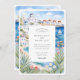 Watercolor Mykonos Seaside Windmills Wedding Invitation