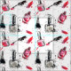 This design features a watercolor pattern illustrating nailpolish bottles and brushes.