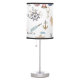 The lamp looks exactly like the picture, bright and colorful. The lamp shade is plastic not what I expected, however I love it! The printing is clear and the name can easily be read.