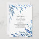 Watercolor Navy Indigo Leaves Baptism Invitation