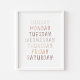 Watercolor neutral days of week educational poster
