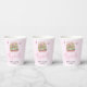 Watercolor New Chapter Begins baby girl shower paper cups. Tell a story of new beginnings with these watercolor paper cups, ideal for a literary-inspired baby girl shower. A whimsical illustration of stacked books, blooming with flowers and fluttering with butterflies, captures the magic of this next chapter. The mother's name is elegantly scripted, creating a personal and refined detail against the gentle pink watercolor wash.