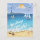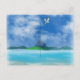 This beautiful postcard is perfect for sending to friends and family from beaches anywhere! It's a beautiful, serene beach scene done in watercolor paints. There's a sailboat, lighthouse on a distant shore, seagulls, crystal clear blue water, seashells and a sand dollar on the beach. Be sure to look at the back too!