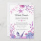 Whimsical pink and blue ocean themed virtual long distance bridal shower invitation featuring sea ferns, seaweed, coral, shells and starfish.
