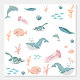 A beautiful colorful watercolor ocean sea animals pattern design. An ocean creatures design featuring cute sea animals such as a turtle, whale, dolphin, jellyfish, fish, narwhal, sea plants and coral. An ideal design for anyone who loves sea animals, watercolor illustrations and ocean themed designs.