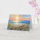 Pretty watercolor sunrise over ocean horizon with beach grass for birthday.