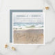 Beach theme square wedding Save the Date card features a watercolor ocean waves seascape with "Save the Date" written in the sand. Reverse side is a light sea blue. Perfect for nautical, tropical, destination and coastal weddings. Artwork by KL Stock.