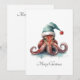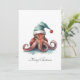 Watercolor Octopus Santa Hat Christmas Card