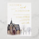 Watercolor Old Church Snow Winter Wedding Foil Invitation