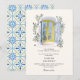 Watercolor Olive Blue tile Greece Wedding Invitat Invitation