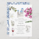 Watercolor Olive Blue tile Greece Wedding Invitation