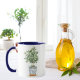Coffee mug featuring a watercolor illustration of an olive tree with lush olive branches scattered throughout image. The tree is set in a blue and white planter. Image printed on both sides. Additional sizes and rim and handle sizes available.