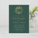 Watercolor Olive Wreath Emerald Green Gold Wedding Invitation