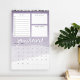 Unique 12 page monthly calendar features a calendar grid beneath three customizable sections to help organize your month, including a lined to-do list with checkboxes, a section for "big goals" and a notekeeping section. Each page features a sheer watercolor gradient background in soothing shades of lavender and lilac purple, with the month in white handwritten lettering. Personalize the front cover with the year and your custom text to make this beautiful 2019 calendar your own.