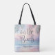 Celebrate your seaside wedding with this double-sided tote bag featuring a soft pastel sunset watercolor design over the ocean. Warm sunset tones blend beautifully as gentle waves meet the shore, while subtle palm leaf accents add a tropical, airy feel that’s both relaxed and romantic.