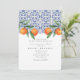 Watercolor Orange Blue tile Mediterranean Wedding Invitation
