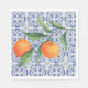 Watercolor Orange Blue tile Mediterranean Wedding Napkins