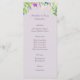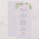 This pretty wedding menu for spring and summer features a top border of watercolor garden images in colors of green, blue, cream, and violet purple. Your custom text is in violet on a soft lavender background. Delicate, airy, and pretty! The back of the card is matching solid lavender. Be sure to see the matching wedding products, including invitations and RSVP cards, in our store.