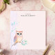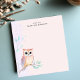 Add a touch of whimsy to your notes with this charming, personalized notepad. A delicate watercolor illustration of a sweet owl perched on a leafy branch decorates the lower-left corner. The soft, pastel background provides a lovely backdrop for your custom text. This notepad is perfect for to-do lists, reminders, or short messages. A delightful addition to any desk or a thoughtful gift.