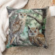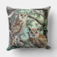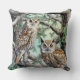 This throw pillow features a watercolor image of owls sitting in large trees, surrounded by branches and green leaves. Their brown and gray feathers look beautiful as their orange eyes assess the scenery around them. It's the perfect pillow for anyone who loves these majestic creatures.