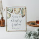 This coastal chic framable sign features soft cream and aqua watercolor oyster and pearl illustrations, with "leave a pearl of wisdom for the newlyweds" in classic navy blue script and block lettering. Perfect for beach themed, summer, or nautical weddings, this sign can be placed alongside a book or stack of cards for guests to share their best advice for the couple.