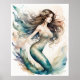 Watercolor Painting Brown Haired Mermaid The aspect ratio is 5:4. It was designed to be printed as 5"×4", 10"x8", 20"×16", 30"x24"