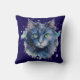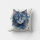 Watercolor art portrait of a cat, featuring calm blues with subtle shades of purple and green. The cat is centered in the painting with her deep gaze and prominent green eyes, surrounded by a splatter effect, adding a lively and fluid feel to the artwork. Perfect as a decorative piece or animal-inspired design.