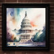 Watercolor Painting of Capitol Building The aspect ratio is 1:1. It was designed to be printed as 20"x20" 16"x16" 12"x12"