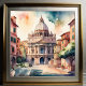 Watercolor Painting of Rome Italy The aspect ratio is 1:1. It was designed to be printed as 20"x20" 16"x16" 12"x12"