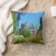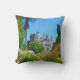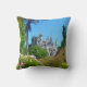 Watercolor palace with towers in a garden with beautiful flowers in blossom