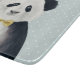 This design features asmart dressed panda bear in a hat and bow tie on a soft polka dot background.