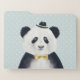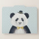 This design features asmart dressed panda bear in a hat and bow tie on a soft polka dot background.