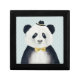 This design features asmart dressed panda bear in a hat and bow tie on a soft polka dot background.