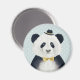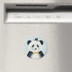 This design features asmart dressed panda bear in a hat and bow tie on a soft polka dot background.