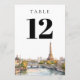 Watercolor Paris France Table Number