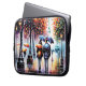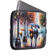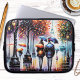 Laptop sleeve featuring a watercolor painting of Paris on a rainy day with a couple walking under an umbrella towards the Eiffel Tower.