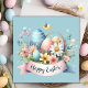 This charming Easter card features a beautiful Easter basket full of pastel colored flowers and Easter Eggs against a robin's-egg blue background. A pink banner says "Happy Easter" while a little yellow bird files overhead. Personalize by customizing the message on the back and/or adding your name(s) or leaving that field blank to add your handwritten signatures later. Background color and text color can be changed using the Design Editing Tool.