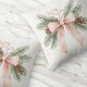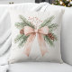 Watercolor Pastel Pink Beige Christmas Bow Pine Throw Pillow