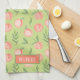 Watercolor Peach Pattern Personalized Lime Green Kitchen Towel