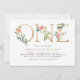 Watercolor Peach Pink Flowers Gold First Birthday Invitation