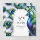 Start your wedding planning with our elegant non-photo wedding save the date invitations, featuring a stunning peacock design. These invitations combine the rustic charm and sophisticated elegance ideal for announcing your garden wedding. Highlighting the bride and groom's names, these invites are personalized and adorned with a delicate feather pattern, enhancing their unique appeal.