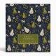 The pattern on this customizable recipe binder showcases beautifully hand-painted watercolor pears in lush green tones, surrounded by flowing leaves and subtle floral details. The deep navy background enhances the vibrancy of the artwork, creating a sophisticated botanical design that feels both organic and timeless.
