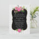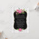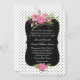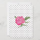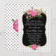 Stylish and romantic wedding invitation done in a white background, with tiny black polka dots. A gold edged decorative black text area, in the middle of the invitation, has beautiful watercolor artwork of pink peony flowers. Personalize the white text for your special day. Matching products are available.