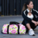 Beautiful watercolor peonies explode in pinks and purples on this beautifully useful duffel bag.