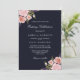 Watercolor Peonies Pink Navy Wedding Invitation