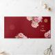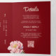 This elegant bilingual Chinese wedding invitation features watercolor peonies and a gold double happiness symbol on a dark red background. Bride and groom names in an elegant handwritten script. Chinese wedding invitation or tea ceremony invitation. With a traditional Chinese text in the middle and a details text with a scannable qr code at the right side of the wedding invitation.