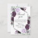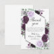 Watercolor Peony Purple Gray Silver Fall Wedding Thank You Card