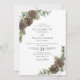 Watercolor Pine Cone Greenery Winter Wedding Invitation